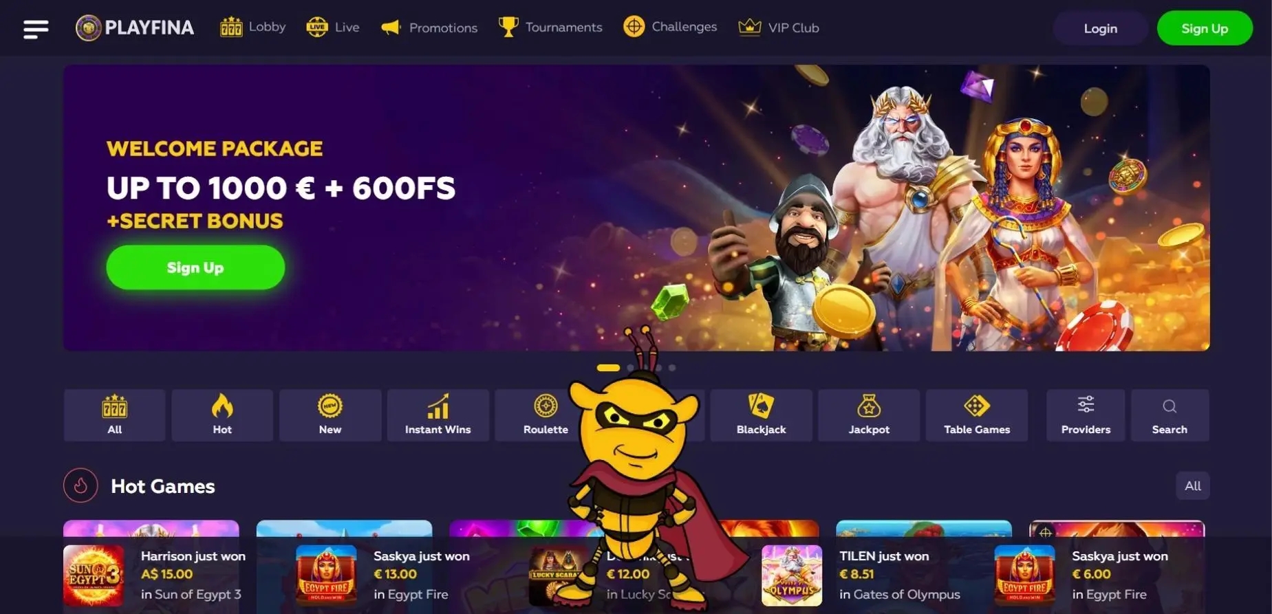 More than 11,000 slots, all varieties of blackjack, dozens of roulette games, craps, video poker, and other games are available to you at Playfina casino online Experience Heart-Pounding Excitement with Live Dealer Games at Playfina Casino – Dive into the Authentic Casino Atmosphere Now!! Play the Best Online Casino Games at Playfina ✓ Try Slots, Blackjack, Roulette, Craps and Video Poker with Huge Bonuses. Playfina Casino How to Start Up to 1000€ + 200 FS + Secret Bonus... Playfina Casino - Bonus Codes – 50 Free Spins!